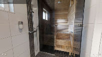 Sauna on päivitetty Harvian Cilindro kiukaalla ja pesuhuoneesta
