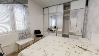 Makuuhuoneessa on parivuode ja runsaasti kaappitilaa,